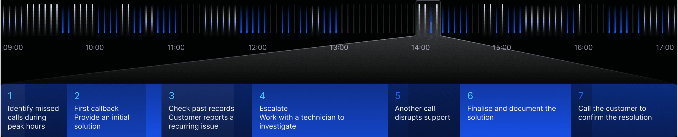 Each call triggers new actions, follow-ups and escalations — a small issue easily multiplies into a long chain of tasks