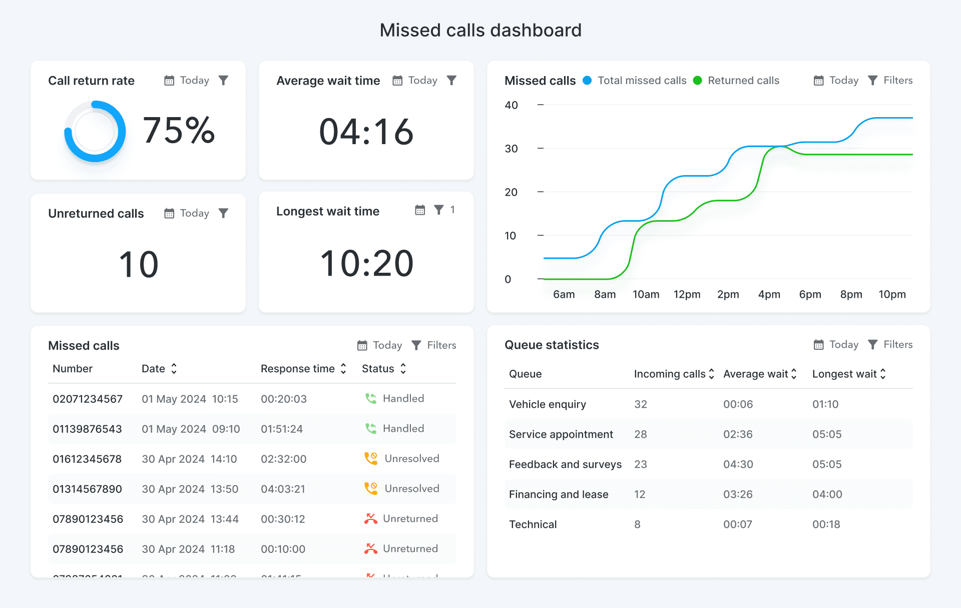 Teams need a clear view of line performance so they can spot missed calls and rising load in time